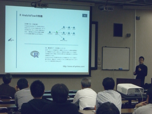 弊社代表の鈴木がRユーザー会(2017年度統計数理研究所共同研究集会「データ解析環境Rの整備と利用」。11月25日、統計数理研究所にて)で発表を行いました。
